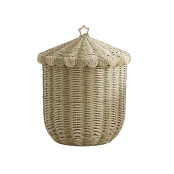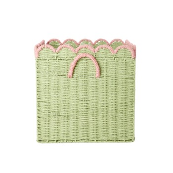 Cesta de cuerda de papel de circo festoneado a precio barato, cesta tejida, contenedor de almacenamiento para organizar juguetes de lavandería y decoración hecha en Vietnam