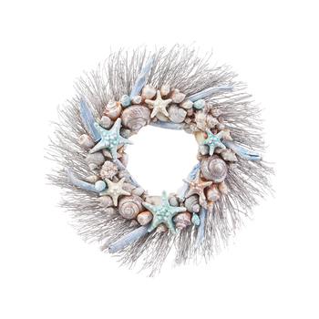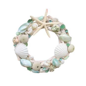 Handmade Natural Seashell Starfish Wreath Wal Hanging Coastal Beach Theme Wall Door Decor Wedding Home Decoration Gift DIY Craft